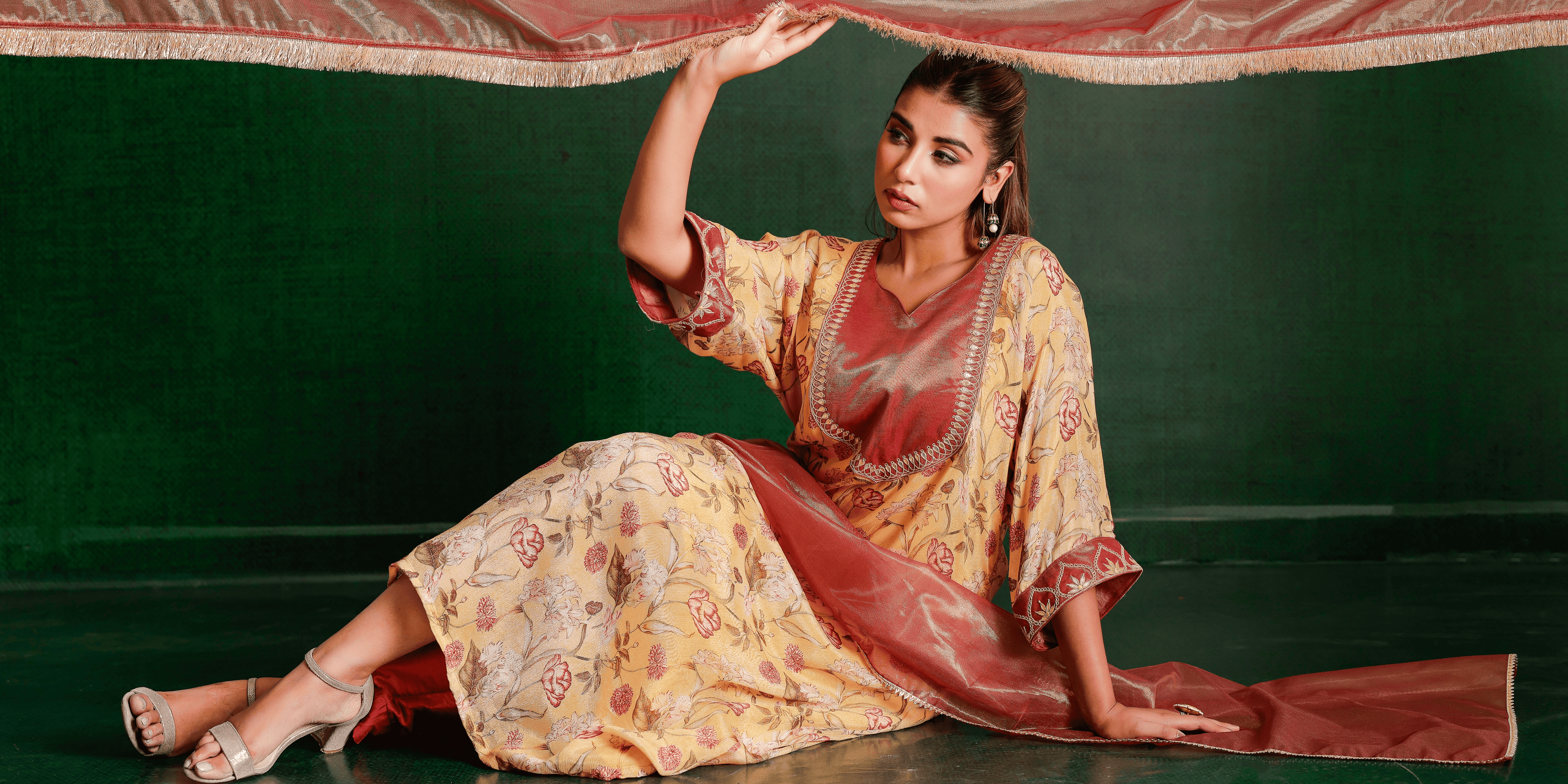 SOLD OUTYELLOW IKKAT DUPATTA SET