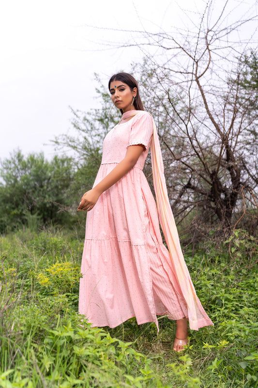 SOLD OUTYELLOW MULTIPRINT ANARKALI SET