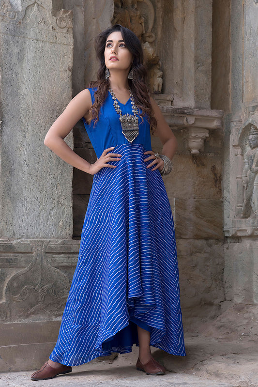 SLEEVLESS ASSYMETRIC BLUE DRESS