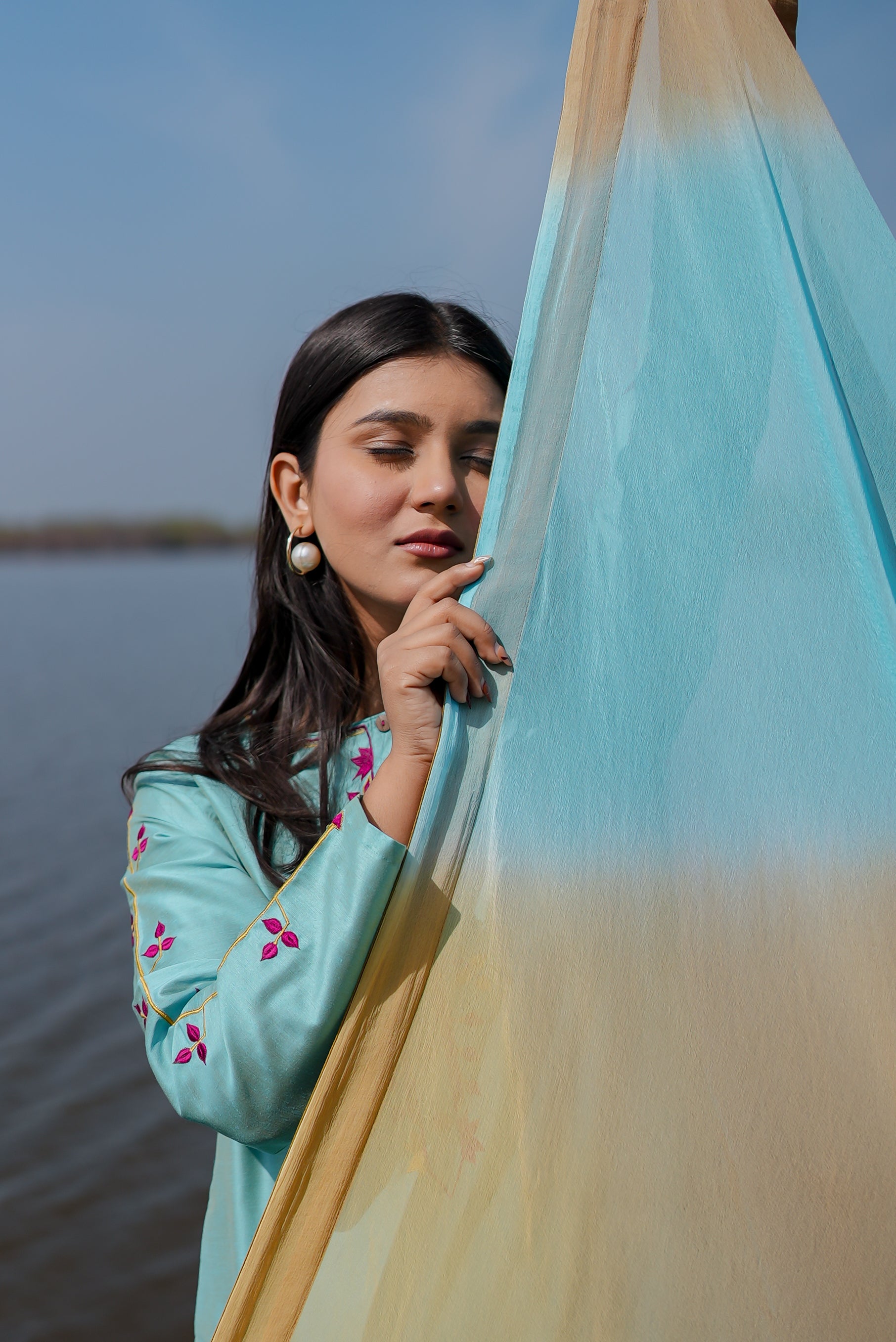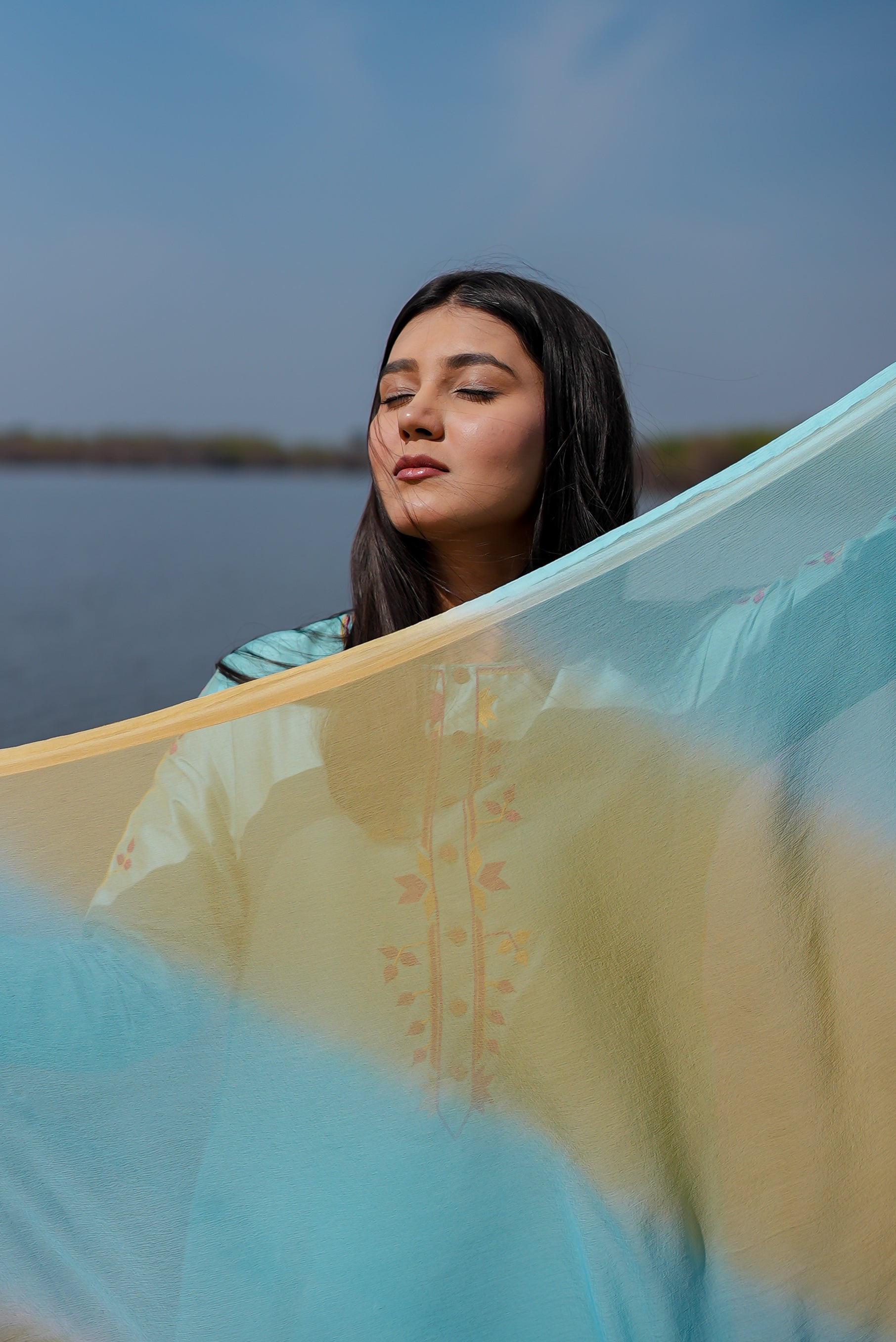 DUPATTA - PURE JAPANESE CHIFFON WITH HAND MADE LEHERIYA