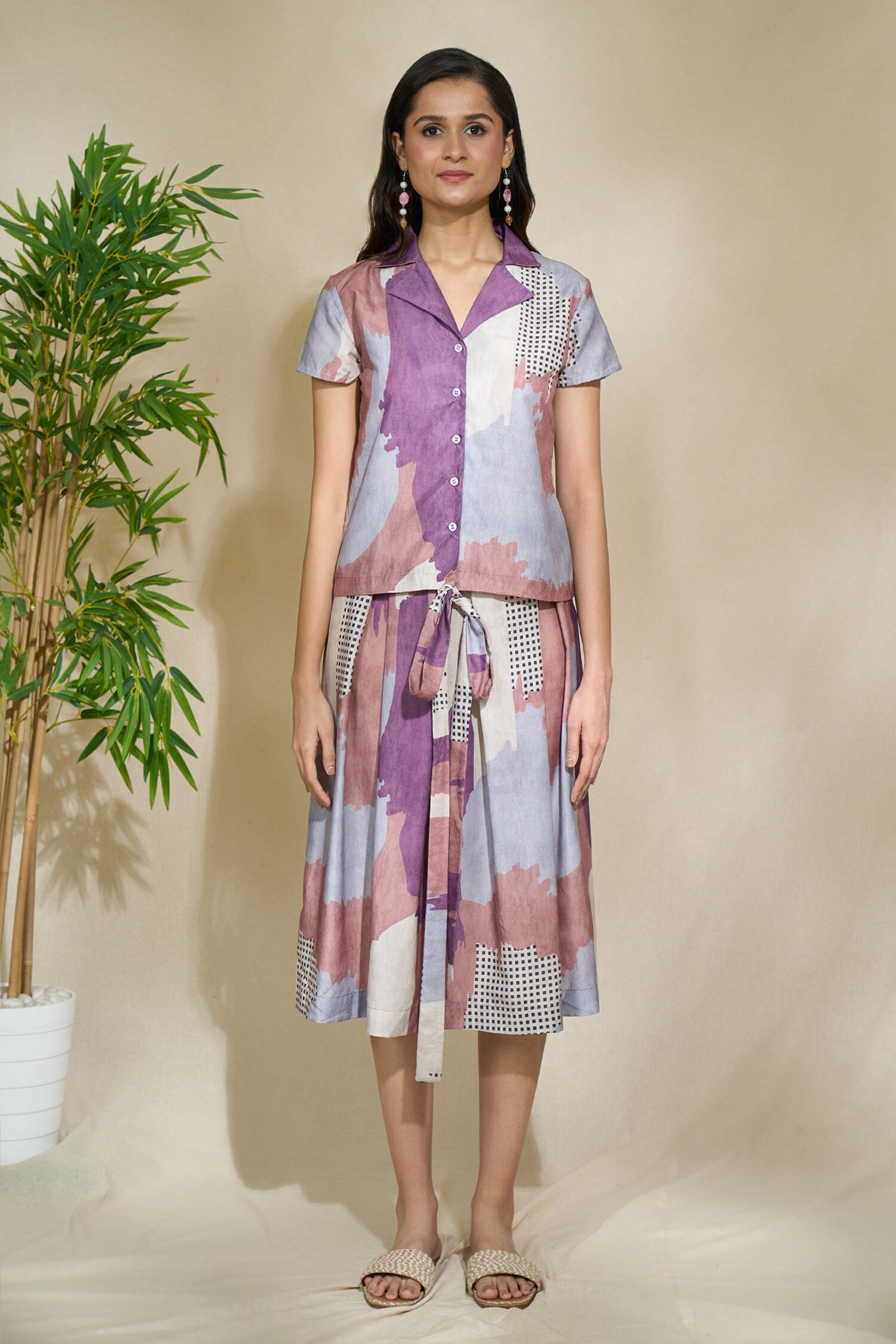 A SUPER CHIC WRAP SHIRT (CAN BE TIED FRONT OR BACK) WITH A BOX PLEATED SKIRT – IN PURE MUSLIN.