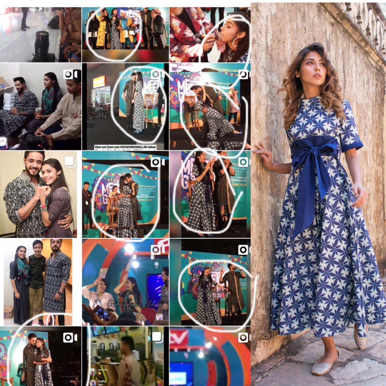 A FLAIRED DRESS IN HANDBLOCK FLORAL PRINT WITH A TIE UP BOW ON THE WAIST AND PLEATED SLEEVE EDGES.
