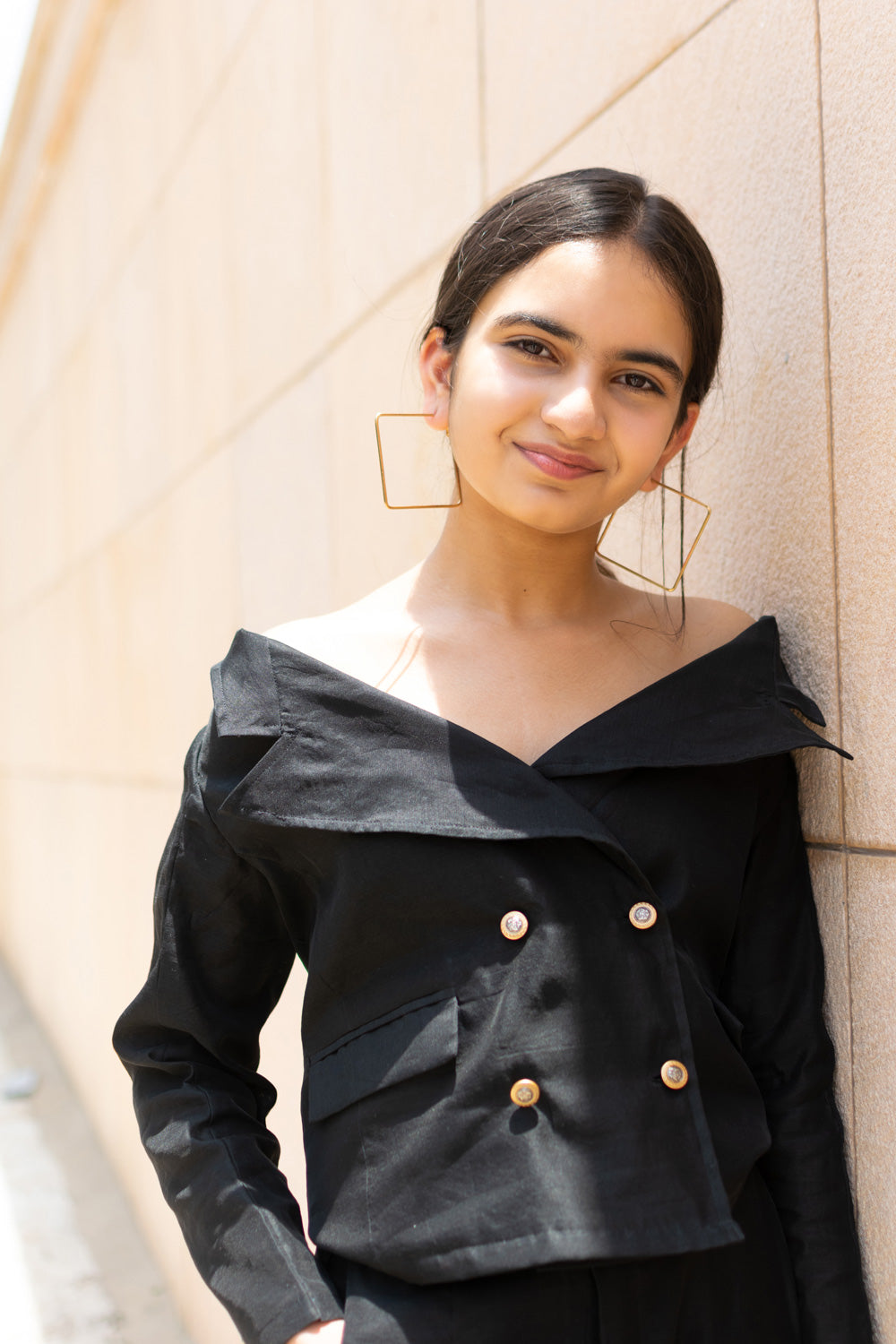 AN OFF SHOULDER BLAZER SET IN BLACK