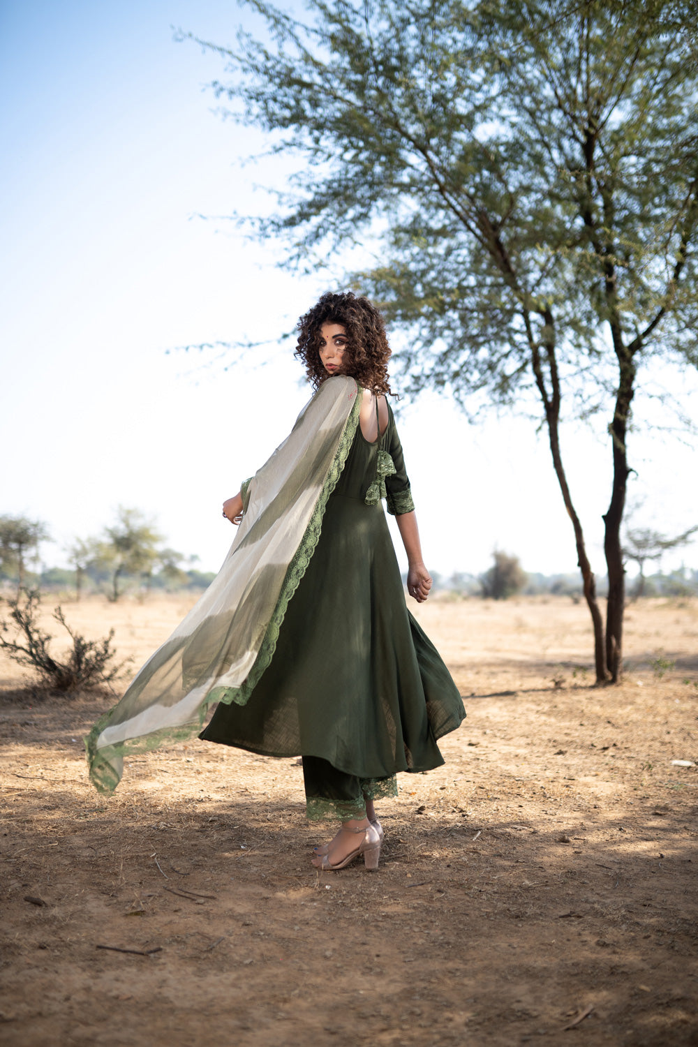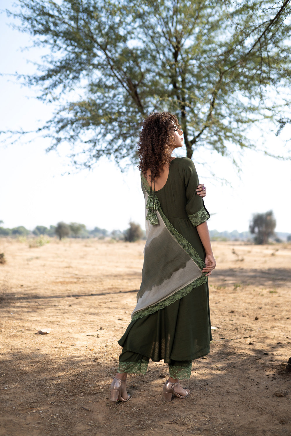 KURTA – LACED SLEEVE EDGE WITH A FLAP OVER IT & GORGEOUS LACE TASSELS AT THE BACK.