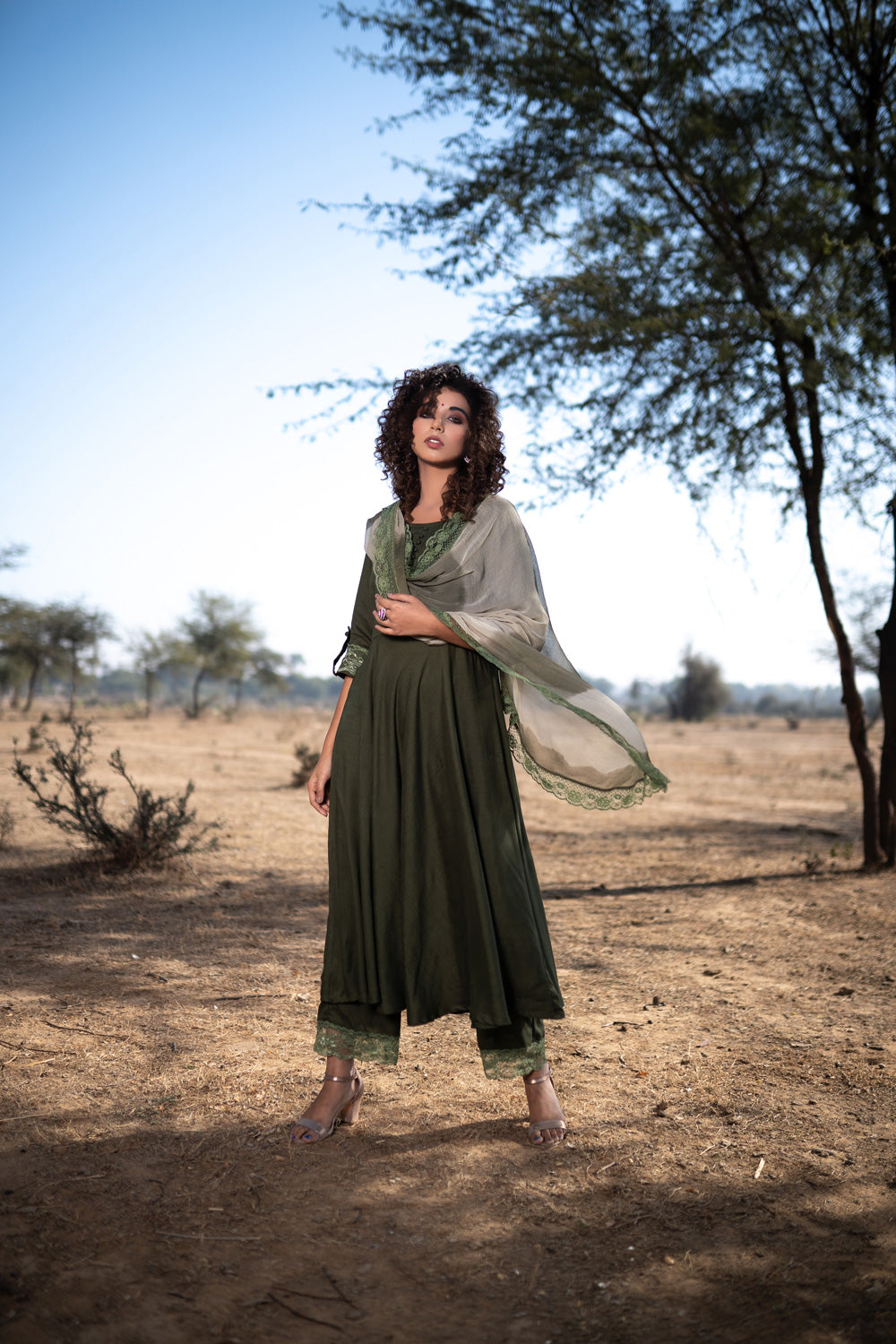 DUPATTA -SHADED DUPATTA IN DOUBLE GREEN TONES & LACED EDGES ALL AROUND.