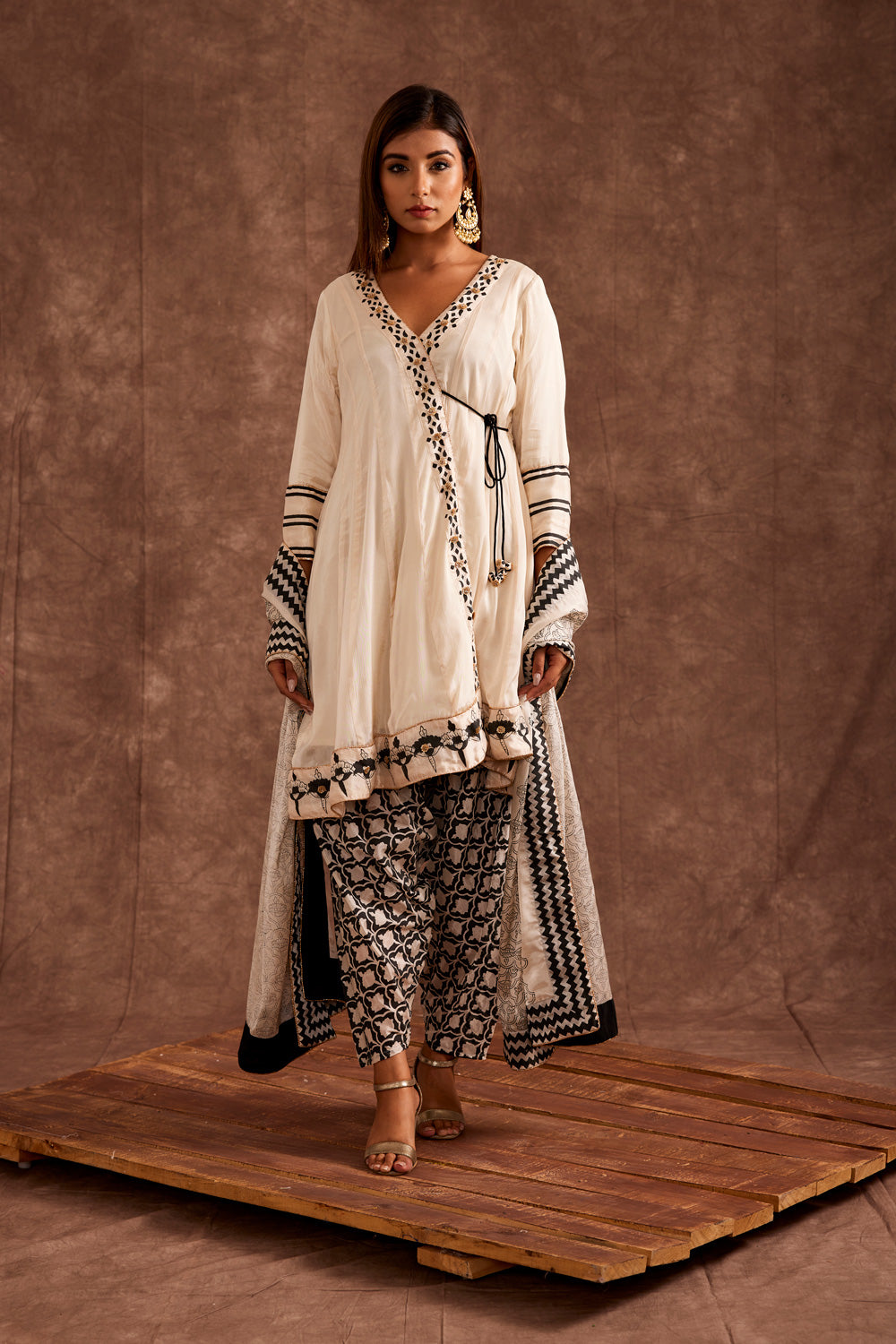 A MUST-HAVE OUTFIT IN YOUR CLOSET, THIS MONOCHROME ANGARKHA WITH ANTIQUE SEQUIN WORK IS A HEAD TURNER.