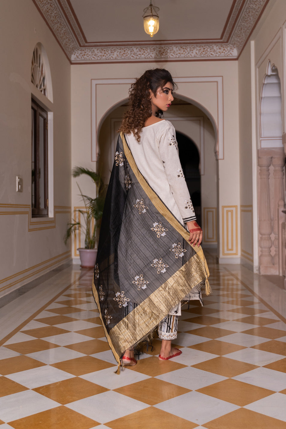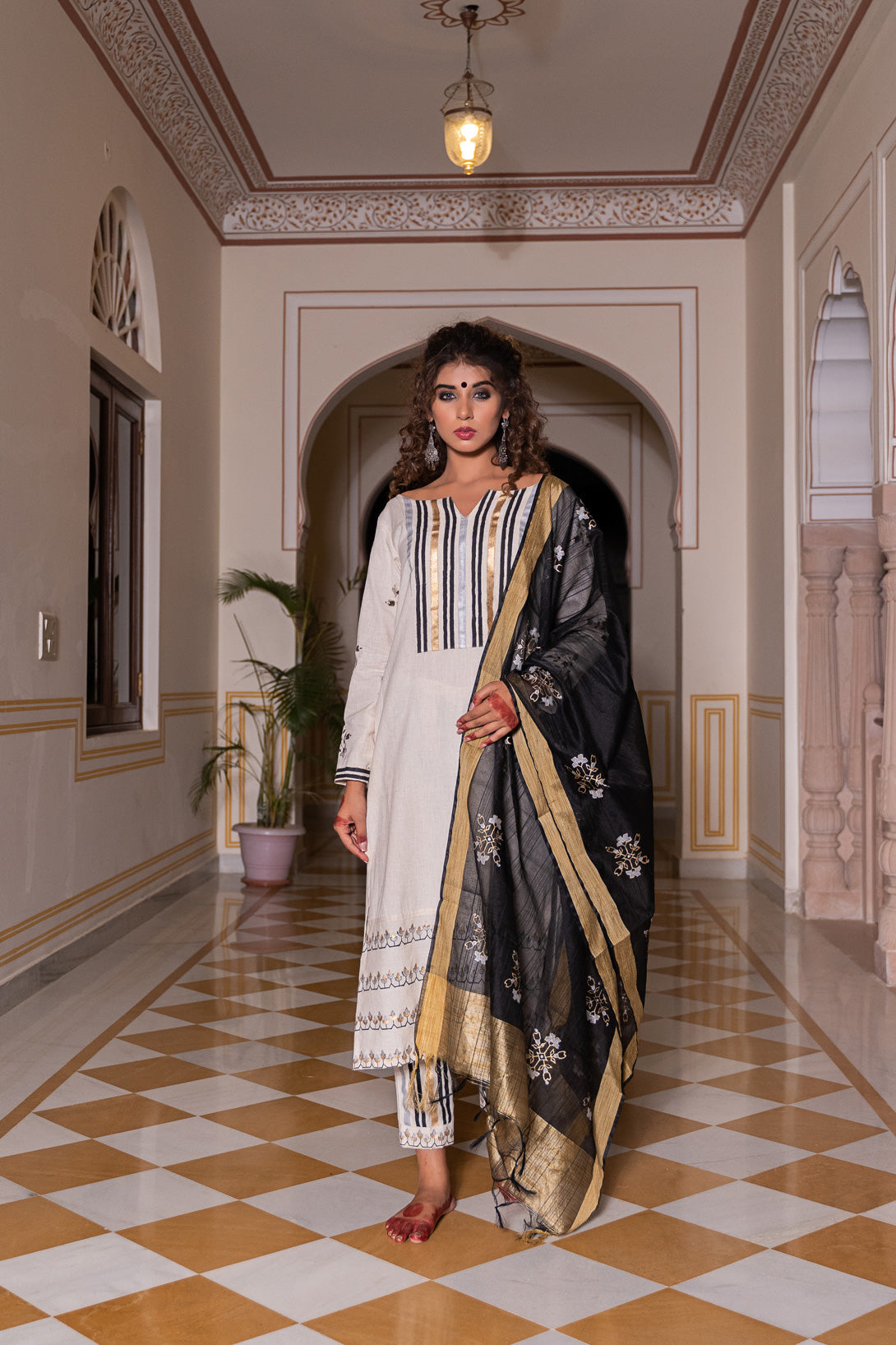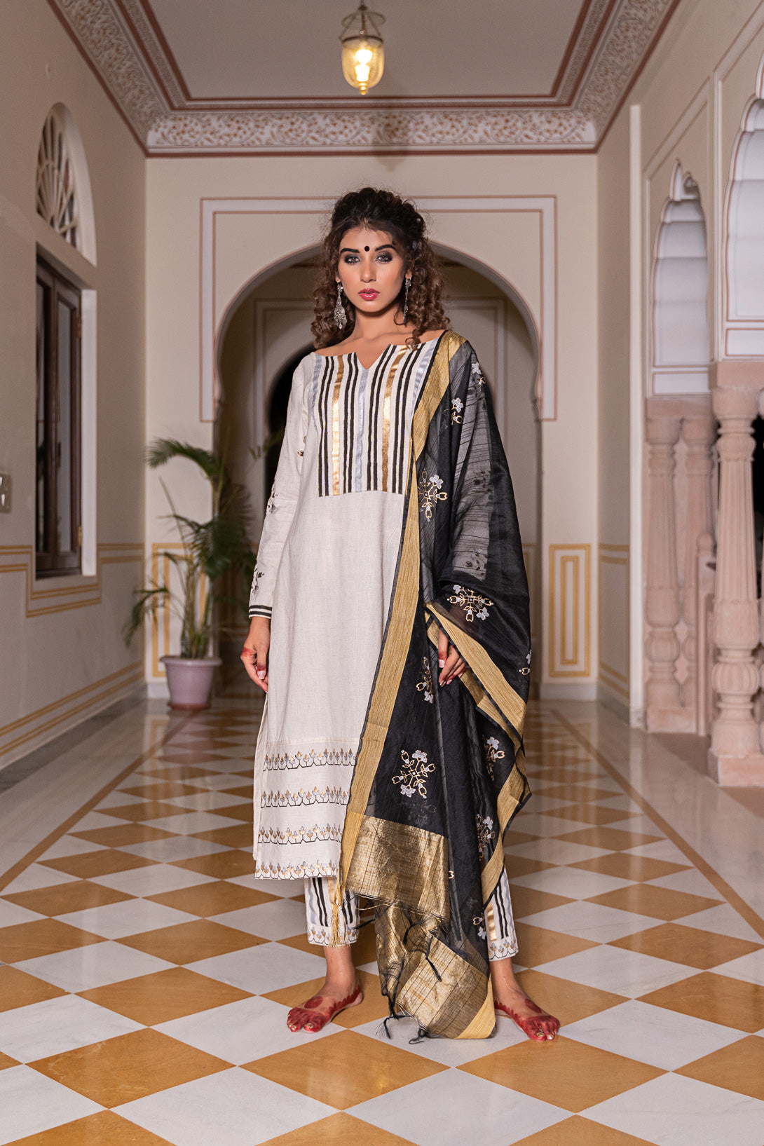 KURTA – CRAFTED IN STRIKING BLACK/WHITE/SILVER/GOLD IN OUR PATENT MOROCCON HAND BLOCK PRINT.