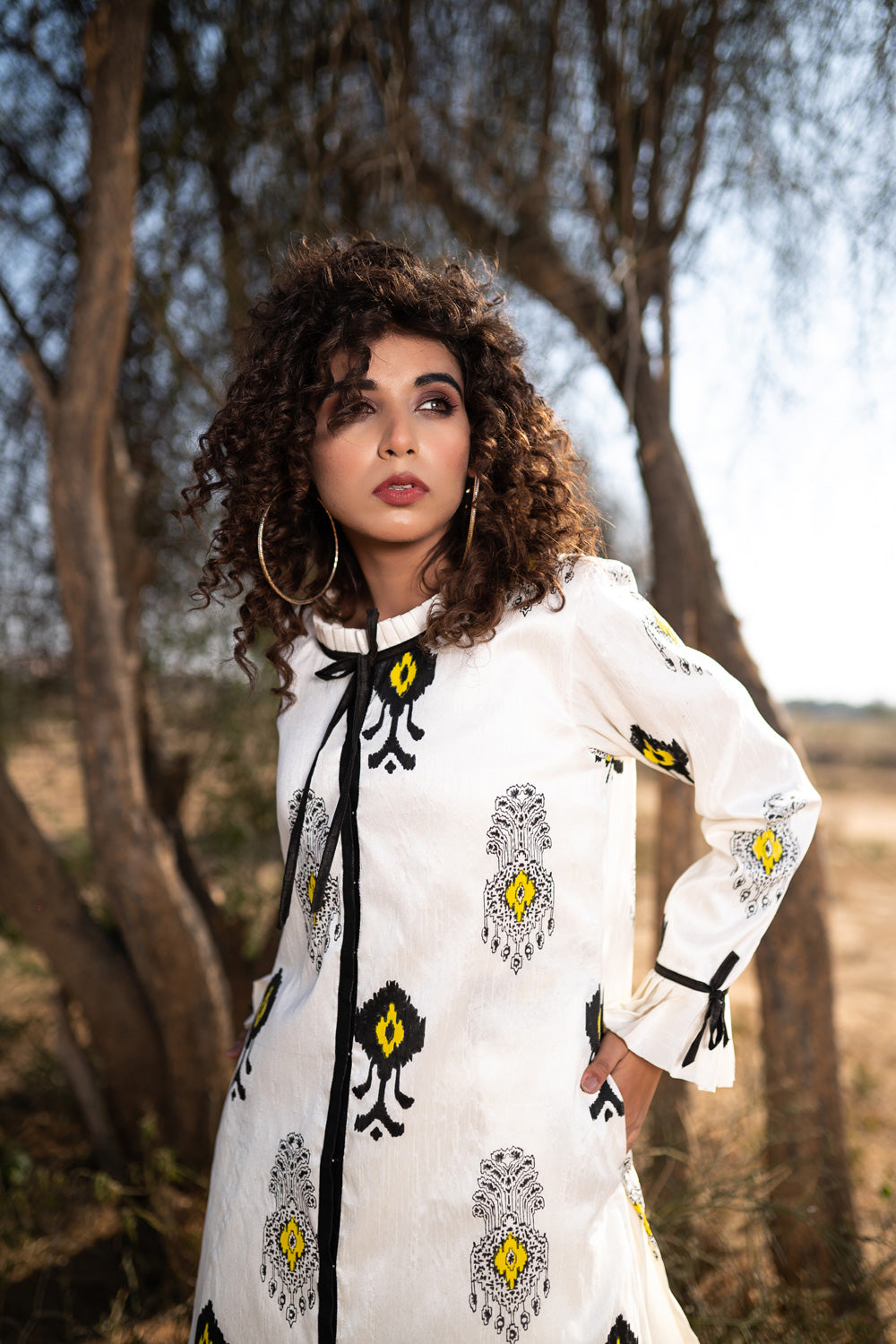 OUR SILK PIECES HAVE BEEN HAND BLOCKED EXCLUSIVELY WITH PRECISION & DETAILING.