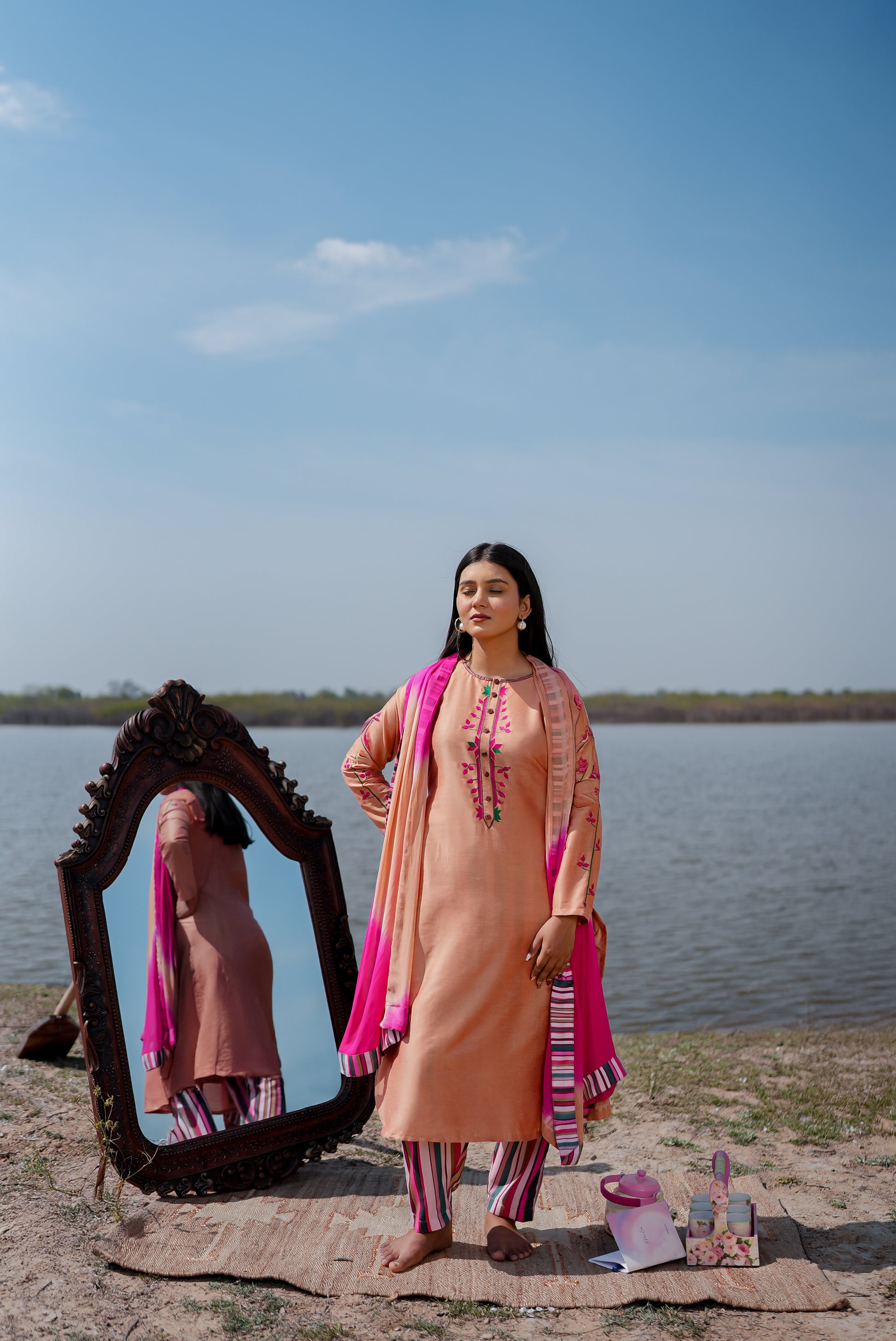 COLOURS - PEACH AND MULTICOLOURED STRIPES