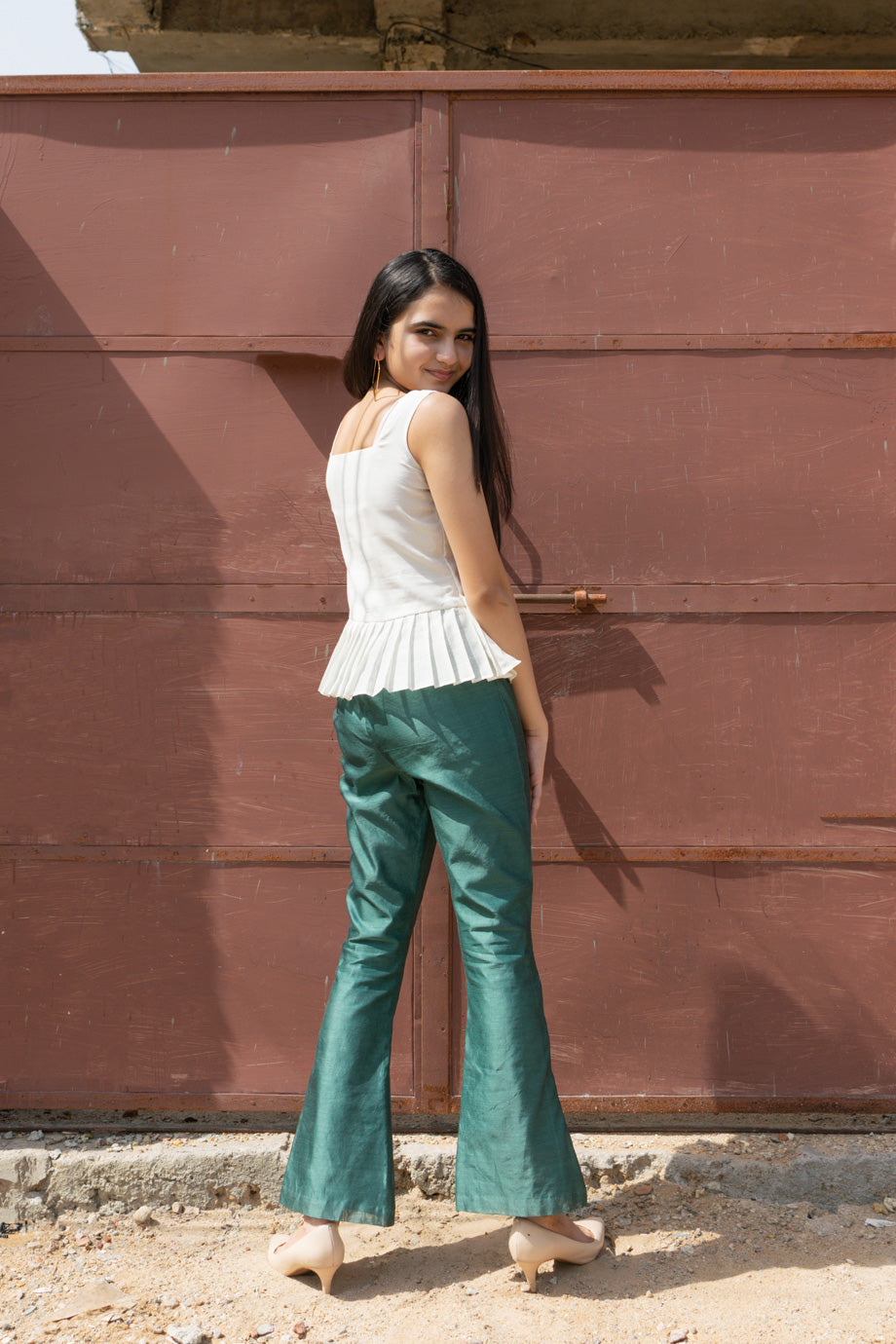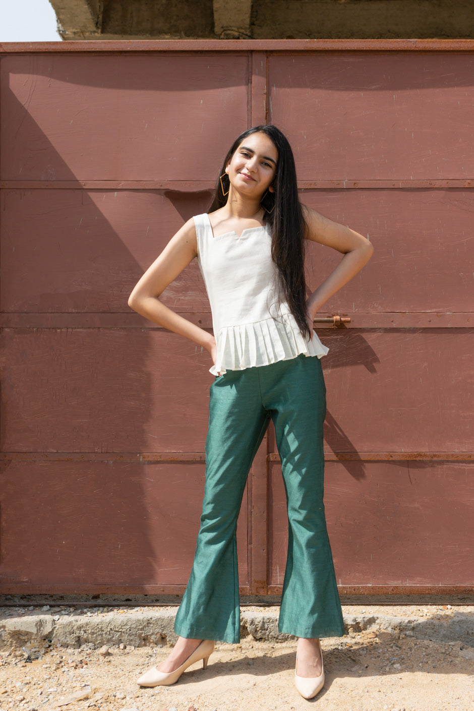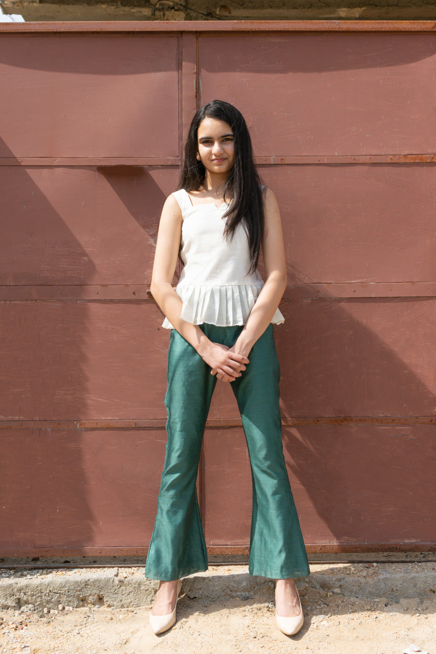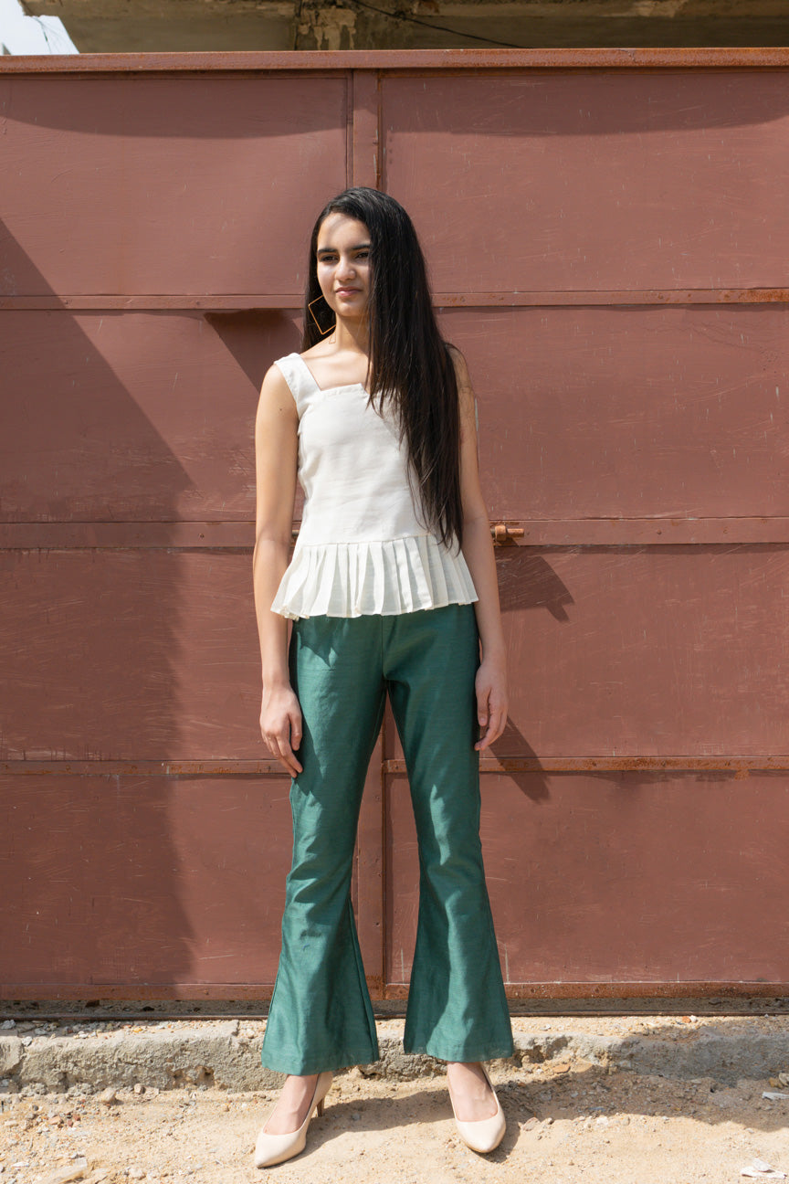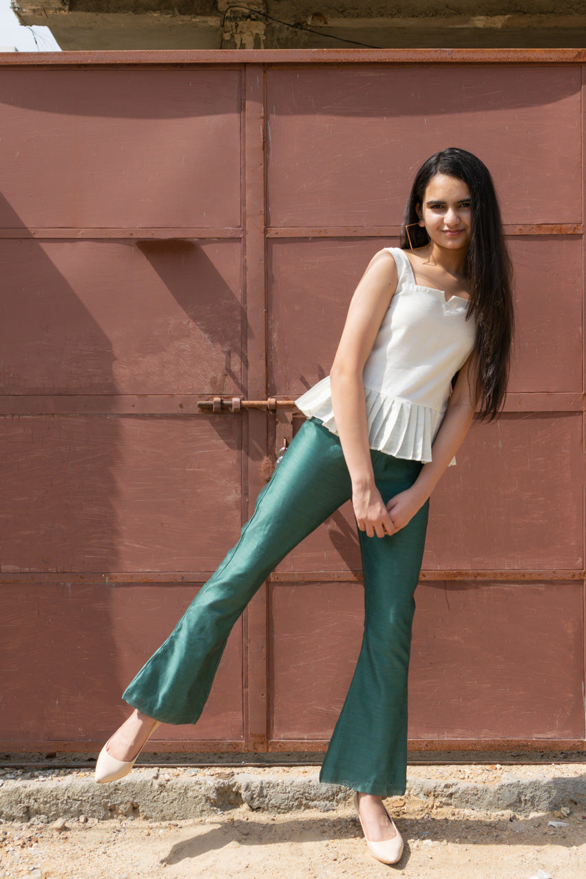 PANTS – TEAL GREEN BELL PANTS WITH ELASTICATED WAIST