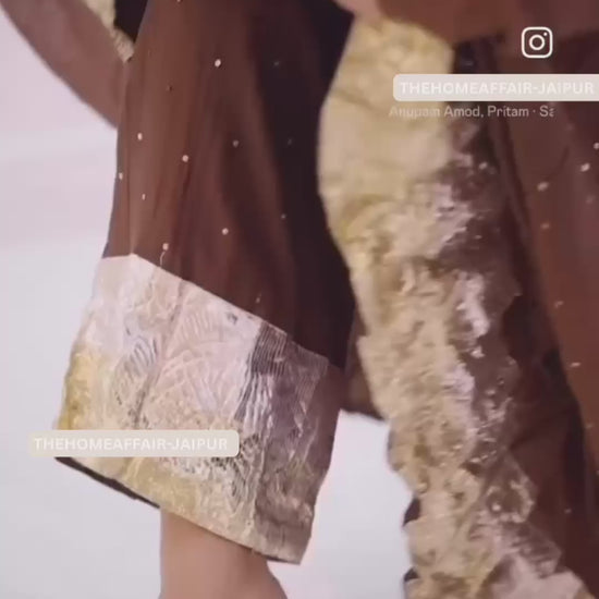 AN INTERESTING SILHOUTTE CRAFTED IN MOCHA WITH VINTAGE PURE DOUBLE TONED LAPPA AND VINTAGE DETAILS.